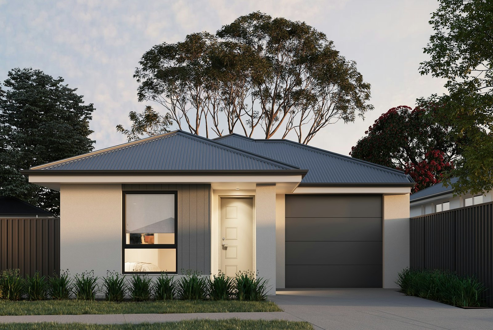 Landscaping to front & rear, including letter box, lawn, bark, and plants